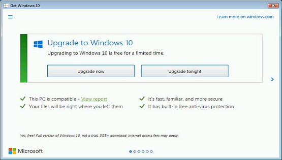 Windows 10 Upgrade ponuda vrijedi za odgovarajuće Windows 7 i Windows 8.1 uređaje, uključujući i uređaje koje već posjedujete. Primjenjuju se neki zahtjevi hardvera/softvera i dostupnost značajki može varirati ovisno o uređaju i tržištu. Dostupnost nadogradnje za sustav Windows 10 za Windows Phone 8.1 uređaje može varirati od proizvođača originalne opreme, mobilnog operatera ili nositelja usluge. Uređaji moraju biti povezani s internetom i imati omogućen Windows Update. Moguće su naknade ISP-a. Nužan je Windows 7 SP1 i Windows 8.1 Update. Neka izdanja su izuzeta: Windows 7 Enterprise, Windows 8/8.1 Enterprise i Windows RT/RT 8.1. Kupci programa Software Assurance u količinskom licenciranju imaju korist od nadogradnje na Windows 10 enterprise ponude, neovisno o ovoj ponudi. Za provjeru kompatibilnosti i druge važne informacije za instalaciju posjetite web-mjesto proizvođača vašeg uređaja i stranicu sa specifikacijama za Windows 10. Windows 10 je automatski ažuriran. Dodatni zahtjevi mogu se primjeniti za ažuriranja. Izvor: Microsoft